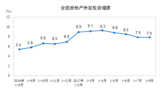 根據(jù)國(guó)家統(tǒng)計(jì)局?jǐn)?shù)據(jù),1-8月份全國(guó)房地產(chǎn)開發(fā)投資69494億元,同比名義增長(zhǎng)7.9%,增速與1-7月份持平,而該增速自5月份以來已經(jīng)連續(xù)4個(gè)月保持回落。