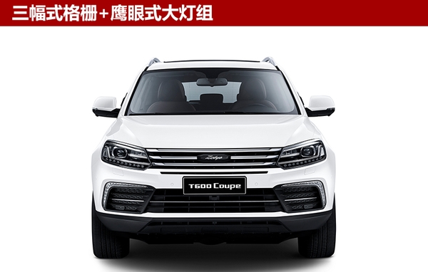 T600 Coupe采用三橫幅式鍍鉻進氣格柵,并與兩側頭燈組相連,且燈組內部采用LED光源。下格柵一根鍍鉻飾條貫穿,配以兩側LED日間行車燈以及仿進氣口的黑色網格設計,更加犀利有神。新車尾燈造型與前臉相呼應,后保險杠、擾流板以及雙邊共兩出排氣布局極具質感;兩側C字形立體尾燈融入LED光源,點亮效果十分醒目。