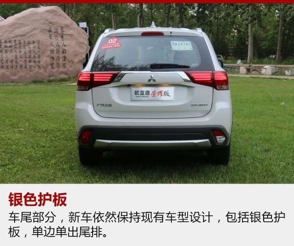 廣汽三菱歐藍德2.0L兩驅榮耀版在外觀上與現款其他車型保持一致,“X”形前臉的造型非常別致。LED光源的日間行車燈和示寬燈都集成到前燈組之中,使新車充滿科技感。整車長寬高分別為4705/1810/1680毫米,軸距為2670毫米。