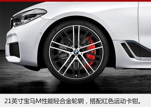 細節設計上,寶馬6系GT M運動套裝版采用21英寸鋁合金材質的雙色輪輞,造型更為獨特,突出其運動風格。另外,車門兩側的碳纖維反光鏡為純手工打造,LED光源的轉向燈鑲嵌在其中,加上流暢的車身腰線,整體看起來更為協調。此外,新車還配備紅色運動剎車卡鉗支架,將整車的運動氣質又一次提升。
