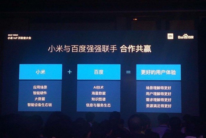 在雙方合作之下,未來將由百度營運長陸奇帶領團隊負責小米物聯網應用背后所使用人工智能,而小米則將持續專注于硬件設備研發,借此實現軟硬件完整互補成效。透過小米物聯網裝置普及化所建構生態體系,配合百度旗下人工智能技術、巨量數據分析能力與相關服務應用,將使整個物聯網應用體驗更加完善。