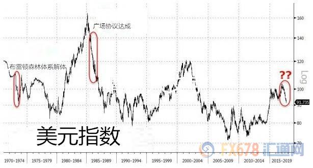 如下圖所示,在《廣場(chǎng)協(xié)議》之后,美元指數(shù)開啟了漫長(zhǎng)的熊市周期。那么,如今,這一幕是否會(huì)再度上演呢?