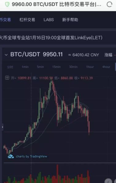 這是1月17日區塊鏈貨幣的市場表現,一片大跌,其中比特幣一度跌破1萬美元。