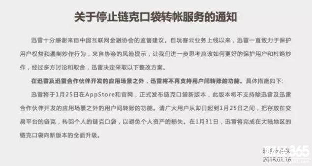 而國內做玩客云的迅雷,也發出了通知,即將停止業務轉賬:
