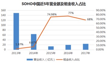 你若問“如何評價這幾年的轉型?”等待你的始終只有一句話和一串數字:很成功這幾年來,SOHO中國的租金收入不斷上漲,2017年達到16.69億元。