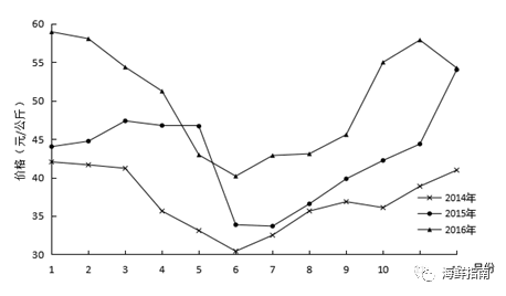 小龍蝦的生產供給季節性特征明顯,市場價格隨上市供給量變化而波動。根據2014-2016年小龍蝦批發價格和出塘價格看。近三年小龍蝦價格逐年提高,價格呈季節性波動,每年的6-7月上市旺季期間價格最低,春冬季上市淡季期間價格走向峰值。