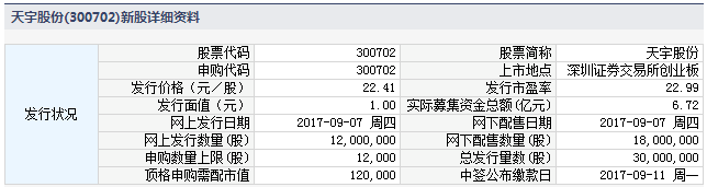 財經365訊 根據交易所公告,浙江天宇藥業股份有限公司于2017年9月7日進行網上和網下申購。本次發行股份數量為 3,000 萬股,全部為新股,回撥機制啟動前,網下初始發行數量為 1,800 萬股,為本次發行數量的 60%;網上初始發行數量為 1,200 萬股,為本次發行數量的 40%。