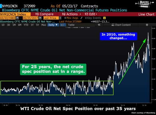 然而,在過去的幾年里,分析人士一直對WTI原油市場上一個巨大的,創紀錄的長期投機性頭寸感到困惑不解。