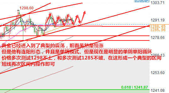 對于近期的黃金,談不上做中線,畢竟沒有很可觀的點位值得我去布局。那么短線也是天天精彩,昨日1295大膽開空,1289果斷收場,斬獲5美金。這樣的行情也只是做區間,黃金日線高位盤整,明眼人都能看出,這次上行遇到瓶頸了,一不注意,追高捕低就是套,所以有點位,有空間,必須見好就收。而昨日金價沖高1295.85后,離前期高點1298.5還差那么一點。今日布局,波段為主,低多等機會,還是這段時間給大家說的,1285-1286不破,還是以此位置做多,下破1285在1280之上,都是補多的時機,那么中線多單完美的點位也是在1280-1285來布局,今天延續鄭贏利昨天的布局下方觸及1287附近操作多,輕倉測試,趨勢沒上周那么明顯,但是別怕,不要慫,還是多。今天操作方面建議區間內盡量低多為主,破位后順勢跟。