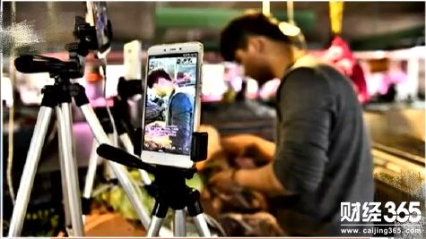當(dāng)然劉鵬買菜也是相當(dāng)不走尋常路的。他先是找人在菜市場上空拉了根網(wǎng)線。隨后,又在窄小的攤位上擺起了三支三腳架。每個架子上都放著手機。身后還放著一臺筆記本電腦。我開通了不少直播平臺。每天一大早,他就打開手機和電腦平臺,開始直播自己賣菜。