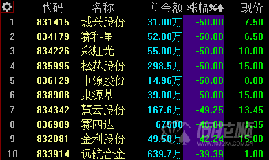 城興股份暴跌50.00%,領跌創(chuàng)新層個股,共16只創(chuàng)新層個股跌幅超10%,跌幅榜前十如下圖: