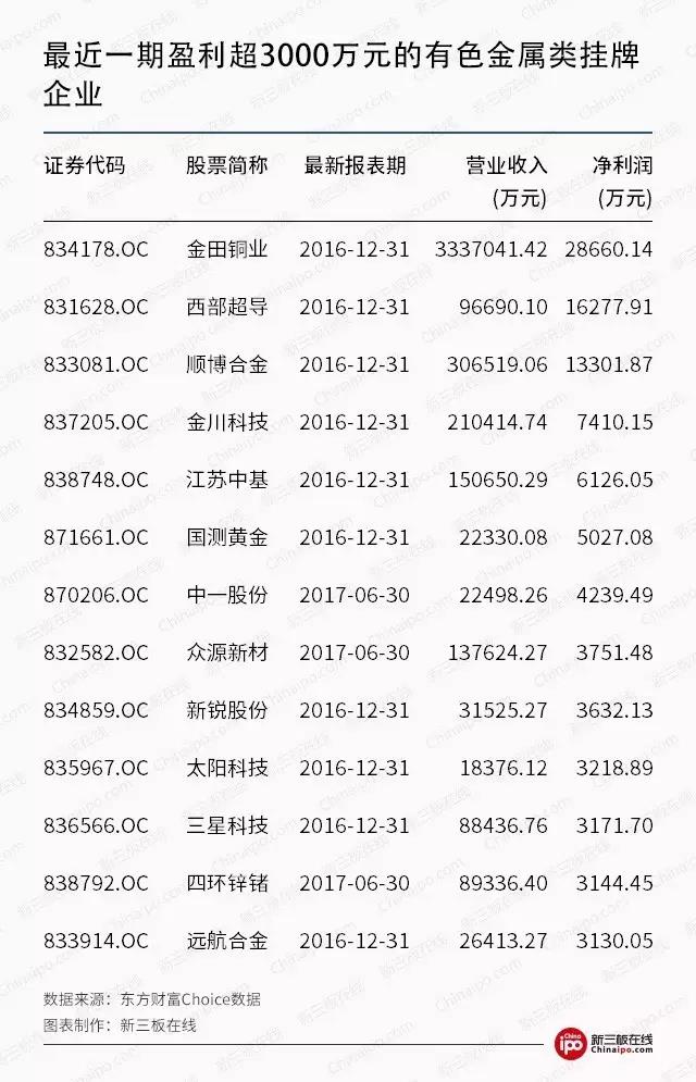 以上就是新三板最新消息,更多內容請關注財經365新三板頻道。(原標題:新三板IPO有色大軍來襲 13家掛牌企業盈利超3000萬元)