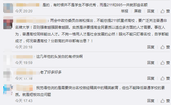 對于白巖松的這個提議,很多學子稱表達出了自己的心聲。所依據的理由是任何一所大學都有人才也有學渣,而且普通高校也不乏有通過后天的努力極大提升了專業水平的學生,單位和企業僅憑就讀的學校來選拔人才,不免有些片面。
